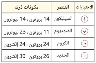 (6) ما العدد الذي تتفق فيه كل ذرات العنصر الواحد؟