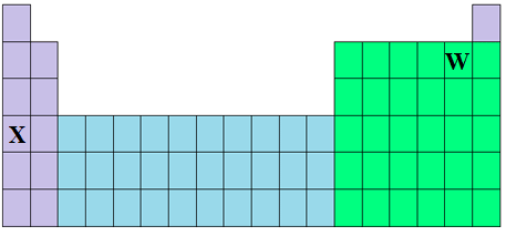 العدد الذري لعنصر ينتمي لدورة (X)، ومجموعة العنصر (W) هو: