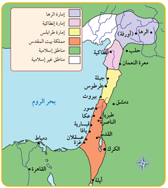 أتأمل الخريطة الآتية، ثم أعدد الإمارات الفرنجية التي أسسها الفرنجة في بلاد الشام: