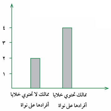 استخدم الرسم البياني في الأعمدة للمقارنة بين عدد الممالك التي تحتوي خلايا مخلوقاتها على نواة، وبين عدد الممالك التي لا تحتوي خلايا مخلوقاتها على نواة.