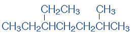 5. إذا احتوت السلسلة على أكثر من تفرع مختلف، سم كل تفرع مسبوقاً برقم ذرة الكربون المرتبطة به، ويتم البدء بتسمية التفرعات هجائياً باللغة الإنجليزية. مثلاً تسمى مجموعة الإيثيل (CH2CH3) قبل مجموعة الميثيل (CH3).