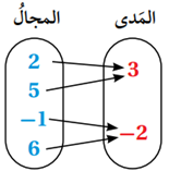 ليس اقتراناً، 1 من المجال ارتبط مع -3 و 1 من المدى.