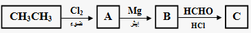 في سلسلة التفاعلات المبينة أدناه، يمثل الرمز C المركب العضوي: